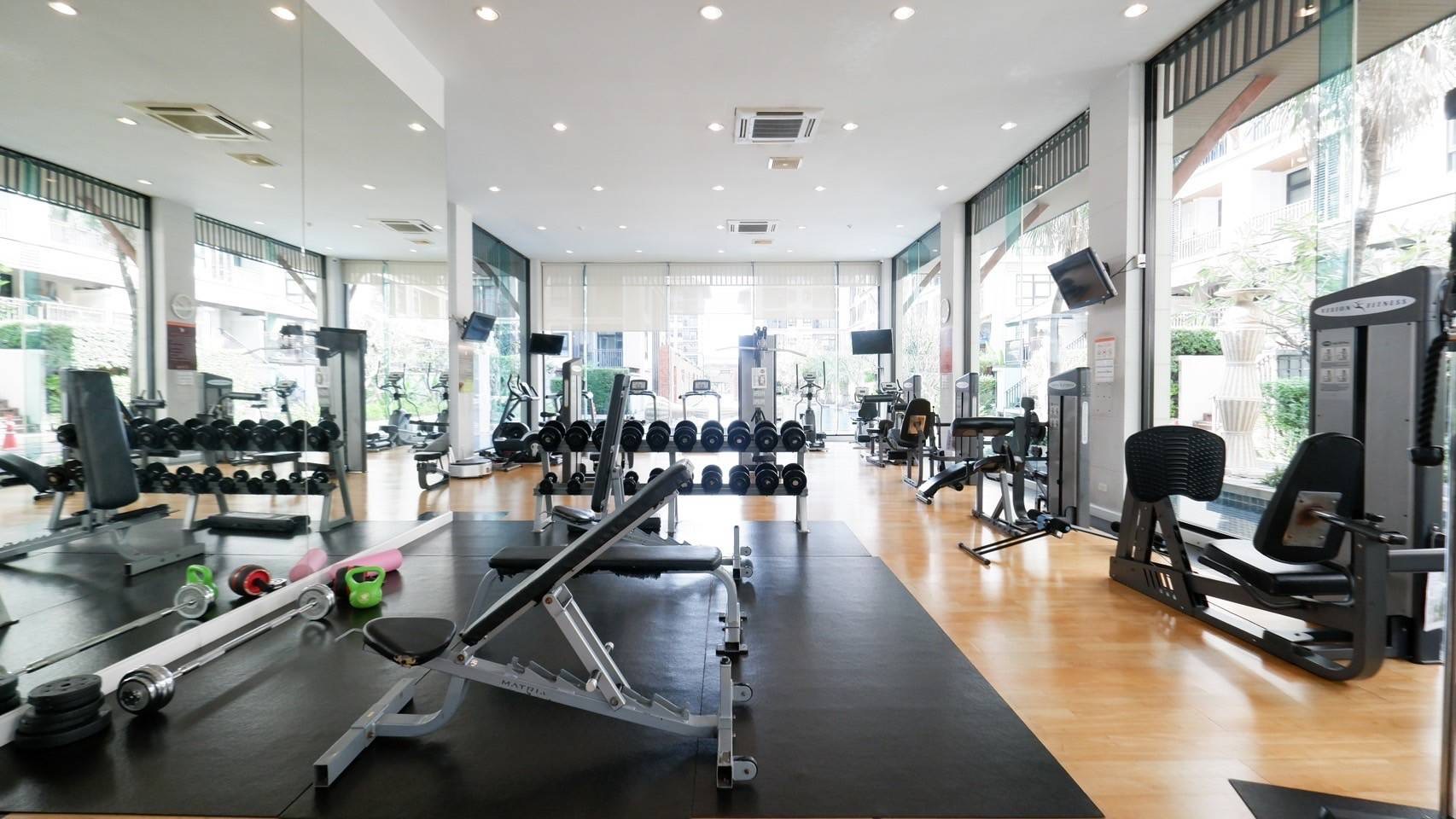 - ส่วนกลางสุดอลังการ สระว่ายน้ำยาว 100 เมตร และห้องฟิตเนสขนาดใหญ่